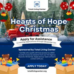 Total Living Center is proud to offer support to families in our community during the holiday season. Through our Christmas Assistance Program, approved families receive a $300 voucher to shop at the TLC Agency Store, which is stocked with gifts, Christmas items, and more for the whole family.Families interested in this program must complete an application, provide verification of household income, and participate in a short interview. This process ensures that assistance is provided to those who need it most.